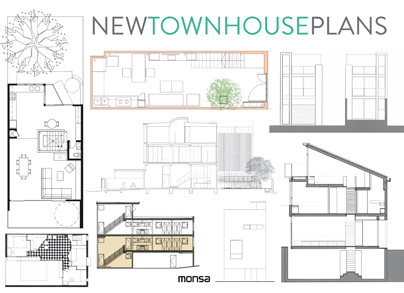 New Townhouse Plans contiene más de 250 planos de plantas, secciones, bocetos y alzados, así como detalles constructivos de un total de 38 originales proyectos de viviendas entremedianeras, construcciones perfectas para los solares del centro urbano de cualquier ciudad.