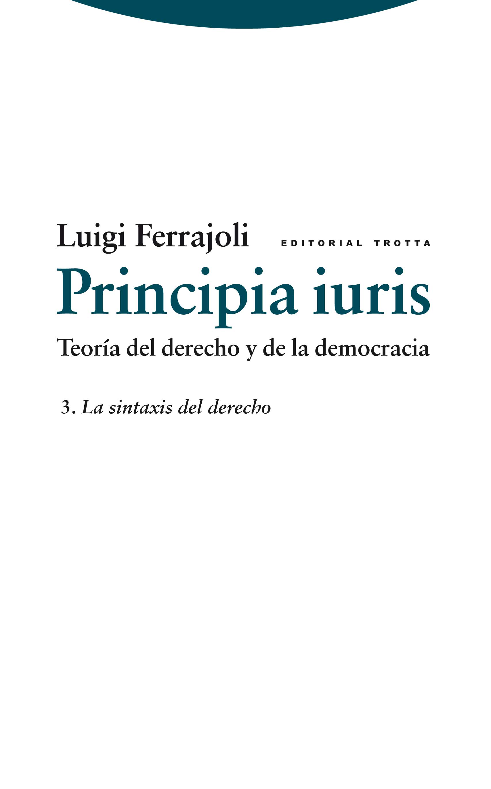 Este tercer volumen de Principia iuris, dedicado a la axiomatización de la teoría del derecho, diseña la sintaxis lógica del discurso teórico y de las complejas estructuras de los ordenamientos jurídicos que forman su objeto. A través del método axiomático adoptado, todos los términos y todas las tesis de la teoría, a excepción de un número limitado de términos y tesis primitivos, son, los primeros, definidos mediante otros términos teóricos y, las segundas, deducidas a partir de otras tesis de la teoría sobre la base de reglas de formación y de transformación previamente establecidas.
