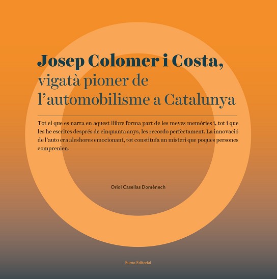 Poca gent sap que Josep Colomer i Costa, fundador de la companyia pelletera Colomer Munmany, va ser un dels pioners de l'automobilisme al nostre país. Entre els anys 1898, quan només tenia catorze anys, i 1906, Colomer va treballar com a xofer per a dues persones riques i influents de la societat osonenca: el banquer Miquel Ricart i l'hisendat Ildefons de Casanova. Ricart el va introduir a la indústria de l'automòbil, mentre que gràcies a Casanova va conèixer la seva futura esposa, Carme Munmany, fet decisiu en la trajectòria personal i professional del jove xofer. Aquest llibre recull les memòries d'aquesta etapa, redactades durant els anys 50 i inèdites fins ara. Colomer retrata com vivien la burgesia i l'aristocràcia de la Plana de Vic i la seva aposta decidida per les noves tecnologies de finals del segle XIX: l'automòbil, l'electricitat, el telèfon, etc. I revela, també, l'esperit d'un home emprenedor que va saber aprofitar les oportunitats del moment.