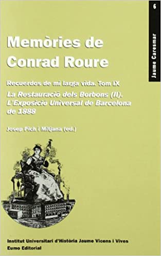 Aquest és el darrer tom de les memòries de Conrad Roure. El subtítol del tom respon al fet que la major part dels articles descriuen l'Exposició Universal de Barcelona de 1888. Amb tot, els Recuerdos comencen amb la mort del general Serrano, el 26 de novembre de 1885, l'endemà de la mort d'Alfons XII. Roure, en el capítol primer, es mostrava molt crític amb la trajectòria política del duc de la Torre, el darrer president de la primera República espanyola. Serrano no s'havia oposat al pronunciament de Martínez Campos a Sagunt, que comportà la restauració de la monarquia i de la dinastia borbònica a l'estat espanyol.