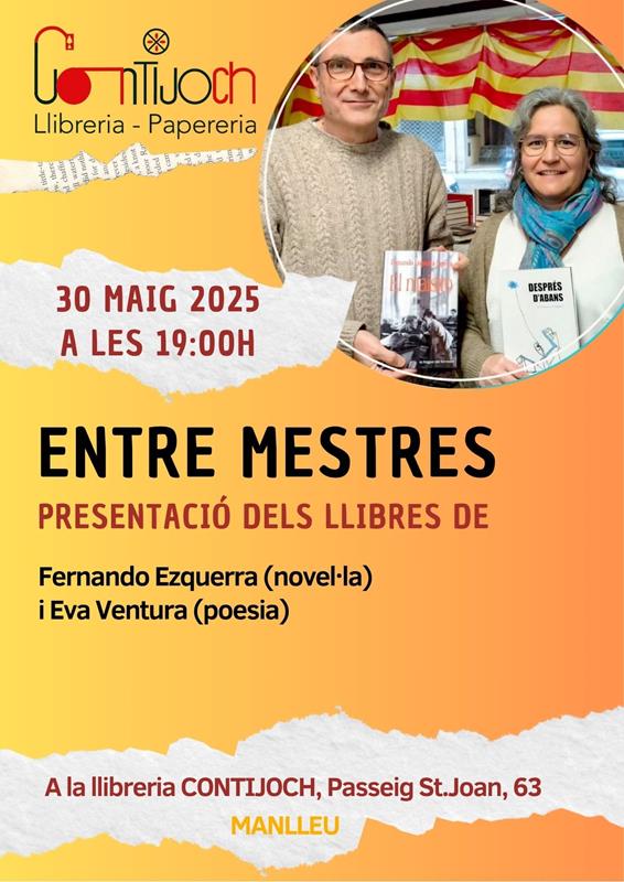 El proper divendres 30 de maig, a partir de les 19h. tindrà lloc la presentació Entre Mestres.