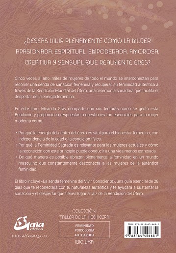 ¿DESEAS VIVIR PLENAMENTE COMO LA MUJER APASIONADA, ESPIRITUAL, EMPODERADA, AMOROSA, CREATIVA Y SENSUAL QUE REALMENTE ERES? Cinco veces al año, miles de mujeres de todo el mundo se interconectan para recorrer una senda de sanación femenina y recuperar su feminidad auténtica a través de la Bendición Mundial del Útero, una ceremonia sanadora que facilita el despertar de la energía femenina. En este libro, Miranda Gray comparte con sus lectoras cómo se gestó esta Bendición y proporciona respuestas a cuestiones tan esenciales para la mujer moderna como: ? Por qué la energía del centro del útero es vital para el bienestar femenino, con independencia de la edad o la condición física. ? Por qué la Feminidad Sagrada es relevante para las mujeres actuales y cómo la reconexión con este principio puede conducir a una vida menos estresada. ? De qué manera es posible abrazar plenamente la feminidad en un mundo masculino que constantemente desconecta a las mujeres de la auténtica feminidad. El libro incluye «La senda femenina del Vivir Consciente», una guía esencial de 28 días que te reconectará con tu naturaleza auténtica y te ayudará a sustentar la sanación y el despertar que tienen lugar a raíz de la Bendición del Útero.
