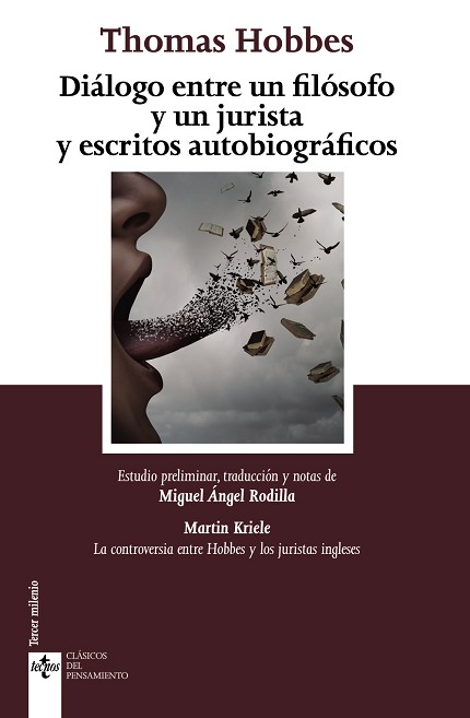 Esta obra, escrita alrededor de 1666, es un examen crítico de algunas de las doctrinas sobre el papel del " common law " en el sistema jurídico inglés defendidas por sir Edward Coke. En su discusión con el juez Coke, Hobbes reelabora algunos de los temas de teoría jurídica y filosofía política que había examinado en el " Leviatán " ; aborda cuestiones conceptuales en torno a las nociones de ley, justicia y equidad; pasa revista a algunas piezas importantes del sistema jurídico inglés, y realiza incursiones en su historia. Pero el " Diálogo " gravita en realidad alrededor del tema de la soberanía y su significación para el sistema jurídico. El volumen se completa con dos escritos de gran interés como documentos autobiográficos: la " Autobiografía " , escrita por el autor en versos latinos en 1672, y las " Consideraciones sobre la lealtad, religión y maneras de Thomas Hobbes " , publicadas en 1662 en respuesta a las acusaciones de ateísmo y deslealtad vertidas por el matemático John Wallis.