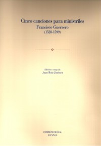 El pequeño volumen que ahora se publica, "Cinco canciones para ministriles", de Francisco Guerrero es el quinto de la colección Patrimonio Musical Español de la Fundación Caja Madrid. Constituye también un homenaje al compositor, uno de los más grandes de la música española, en el cuarto centenario de su muerte, que se celebra precisamente en 1999.