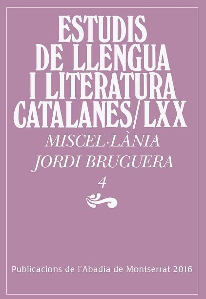 Quart volum del recull de treballs en honor del filòleg Jordi Bruguera.