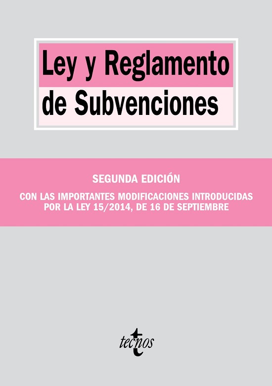 ? Ley 38/2003, de 17 de noviembre, General de Subvenciones, con las numerosas modificaciones introducidas en ella, en especial las generadas por la Ley 15/2014, de 16 de septiembre, de racionalización del Sector Público y otras medidas de reforma administrativa.