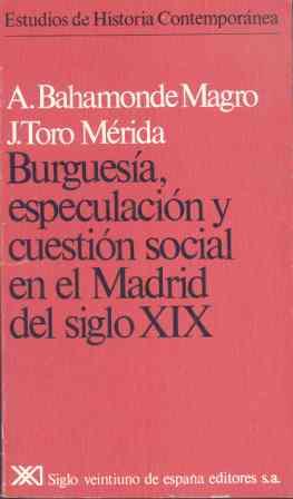 La presente obra, basada en una minuciosa investigación en los Archivos de la Villa de Madrid, pretende analizar los rasgos definitorios del contexto social madrileño tras el impacto del proceso revolucionario burgués y en comparación con el Antiguo Régimen. Los autores parten de la realidad de un Madrid que se convierte en foco de atracción para una burguesía periférica que adquiere en la capital un tinte claramente especulativo. Inversiones en bolsa, especulación del suelo urbano o de los alimentos en períodos de crisis de susbsistencias, son sus principales bases de acumulación. Sólo estratos muy minoritarios de esa burguesía llevan adelante un esfuerzo por industrializar Madrid. A su vez, esta mentalidad especuladora se transmite a las capas medias que destinan sus ahorros a este tipo de negocios, atraídas por unos beneficios que creen seguros y cuantiosos, aunque a la hora de la crisis económica sólo en ellas repercute el hundimiento del andamiaje especulativo. Igualmente, Madrid es foco de atracción para un campesinado que no puede ser absorbido por la incipiente industria madrileña. Paro, hambre y excesiva mortalidad son constantes en el devenir social de las capas populares de la capital. Frente a la inestabilidad general producida por tal situación, la burguesía crea unos mecanismos correctores de la «cuestión social», que a la larga amortiguan pero no solucionan el problema: beneficencia, intervencionismo municipal, etc.