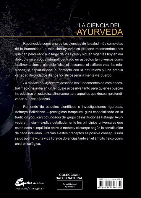 Reconocida como una de las ciencias de la salud más completas de la humanidad, la medicina ayurvédica propone recomendaciones que han perdurado a lo largo de los siglos y siguen vigentes hoy en día debido a su enfoque integral, centrado en aspectos tan diversos como la alimentación, el ejercicio físico, el descanso, el estilo de vida, las relaciones, la espiritualidad, el contacto con la naturaleza y una amplia variedad de cuidados diarios holísticos para la mente y el cuerpo. La ciencia del Ayurveda describe los fundamentos de esta ancestral medicina india en un lenguaje accesible tanto para quienes buscan introducirse en esta disciplina como para aquellos que desean profundizar en sus enseñanzas. Partiendo de estudios científicos e investigaciones rigurosas, Acharya Balkrishna ?prestigioso terapeuta, gurú especializado en la tradición yóguica y cofundador del grupo de instituciones Patanjali Ayurveda en India? explica detalladamente los principios universales que establecen el equilibrio entre la mente y el cuerpo según la constitución de cada individuo. Gracias a estos preceptos es posible conseguir una salud óptima y una vida libre de dolencias tanto en el ámbito físico como en el psicológico.