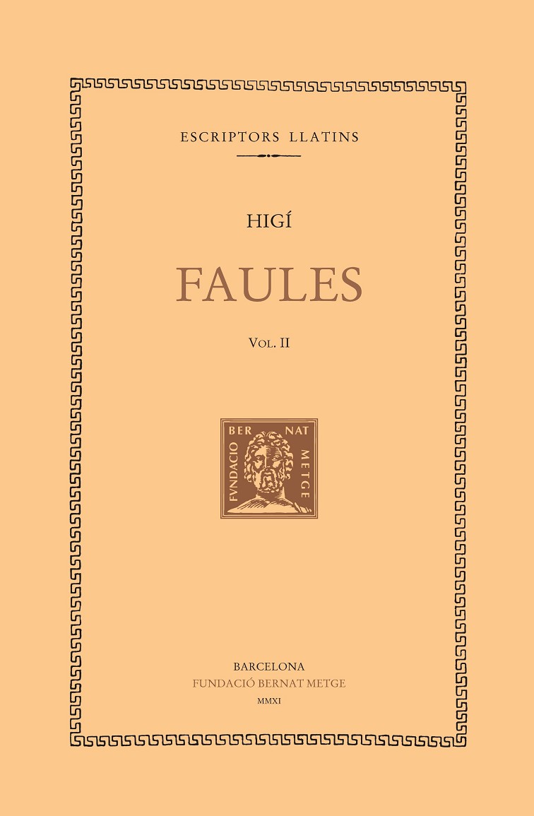 Amb la incorporació del text d’Higí a la col·lecció, doncs, la Fundació Bernat Metge segueix avançant en el propòsit de posar a l’abast del públic alguns dels textos mitogràfics més destacats de l’Antiguitat, com ho són també els ja publicats de Pseudo-Apol·lodor o Ferecides. L’obra d’Higí ha estat editada en dos volums: en aquest, el lector hi trobarà les faules que van des de la 87 fins a la 277, amb la qual es clou el recull.