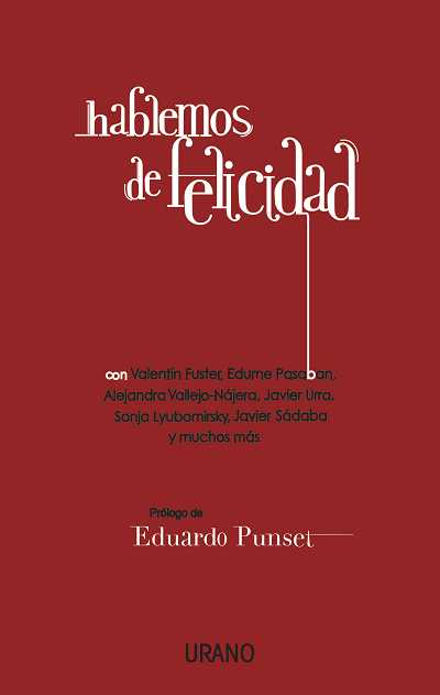 Por primera vez, grandes expertos de nuestra cultura en el tema de la felicidad participan en un libro conjunto que se perfila no ya como una revolución literaria sino como una auténtica conmoción social. Fruto del primer congreso sobre la felicidad celebrado en nuestro país, personalidades de diversos ámbitos ponen en común sus conocimientos y experiencias al respecto: Edurne Pasabán, la primera mujer del mundo que ha culminado las catorce cimas más altas del mundo; Gustavo Zerbino, empresario y superviviente del accidente aéreo de los Andes que inspiró la película Viven; Sonja Lyubomirsky, científica y una de las mayores expertas del mundo en el tema; el padre Pedro Ángel García, cooperante y Premio Príncipe de Asturias de la Concordia, el Honorable Sigmi Thinley, primer ministro de Bután, y muchos más.