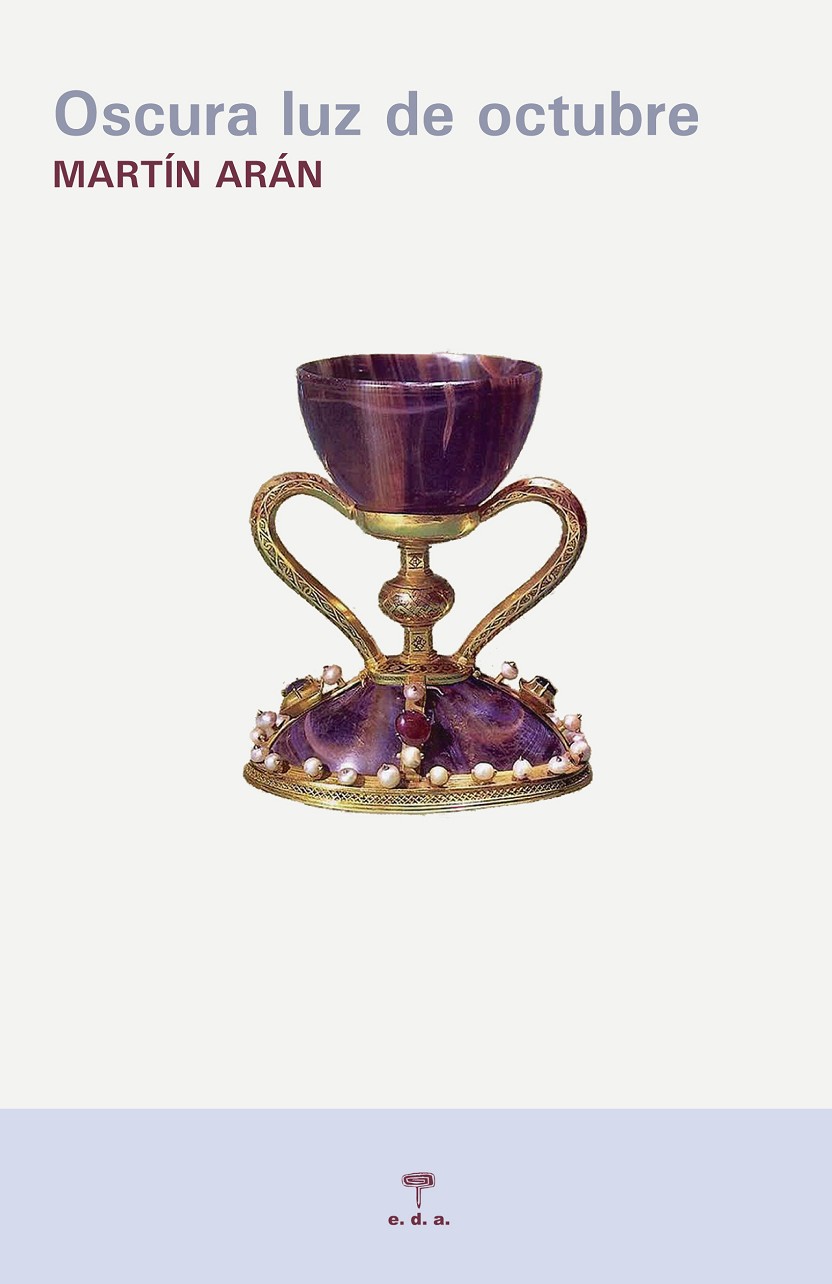 En Oscura luz de octubre una enigmática tablilla que procede de la bandeja en la que se exhibía el Santo Grial y que representa a la lujuria, uno de los siete pecados capitales, va pasando de una mano a otra. A lo largo de las páginas de la novela sabremos cómo obtiene ese objeto cada uno de sus poseedores y el significado esotérico y altamente simbólico que para cada cual tiene. Por uno u otro motivo, todos la desean, ya sean cátaros o nazis, cónsules o adinerados jeques árabes; e, inevitablemente, todas sus historias se irán cruzando. Pero en esta nueva obra, Martín Arán nos relata también, paralelo al de la tablilla, un alucinado viaje que transcurre por los territorios del desamor, de la melancolía y del desamparo; un recorrido en el que la tristeza presentida queda enmascarada por unas densas gotas de ironía y por la presencia consistente de la amistad y del amor. Todos los personajes circulan por los dominios del mito, del símbolo y de la fábula, cada uno empecinado en la búsqueda de su íntimo Grial, un pájaro misterioso que conecta la realidad con el deseo y la esperanza. Todos, con el misterio entre las manos, buscan la felicidad que está vedada a los hombres; quizá porque todos saben que lo endeble es la razón, y lo saludable, como vio Cervantes, es la locura. De nuevo Martín Arán lleva a cabo un brillante ejercicio de conciencia creativa que, al igual que su anterior novela, a muy pocos dejará indiferentes.