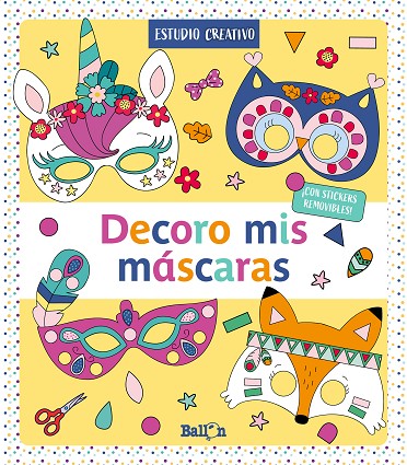 ¡12 Máscaras para colorear y decorar con stickers removibles! En esta nueva serie, los niños podrán colorear las máscaras y a continuación decorarlas con stickers removibles. En cada página, debajo de la máscara, tienen una presentación con los stickers que necesitan. Pueden observar el modelo y seguir la propuesta de colores. Después de recortar y hacer los agujeros indicados, se podrán colocar las máscaras con una goma elàstica.