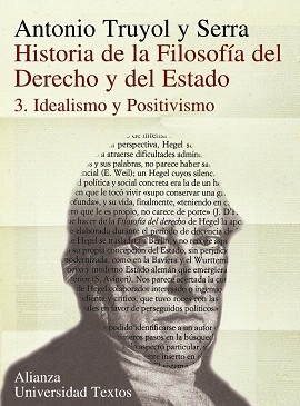 países de habla hispana.» Así comienza la presentación de este volumen a cargo del catedrático de Filosofía del Derecho de la universidad de Sevilla, profesor Antonio-Enrique Pérez Luño, editor del mismo por voluntad del autor. El planteamiento de esta obra no sólo se ocupa de los desarrollos teóricos específicos dentro de su campo temático, sino también del ámbito cultural en que aquéllos se inscriben, lo que hace de ella «un monumento de fecunda virtualidad pedagógica», en palabras del editor. Con este tercer volumen se completa una obra cuyo primer tomo apareció en 1954 y el segundo en 1975, que han conocido ya varias ediciones. Este volumen se divide en dos libros, el primero dedicado al Idealismo alemán y el segundo al Positivismo. En el primero se analiza la obra de autores como Fichte, Schelling y Krause, con especial énfasis en Hegel, figura a la que el autor dedica uno de los capítulos más brillantes de toda su obra. Se incluyen tres capítulos dedicados al romanticismo político, al liberalismo y al Risorgimento italiano, respectivamente. El segundo libro comienza con un capítulo dedicado al utilitarismo inglés y sigue con los dedicados al primer socialismo (Saint-Simon, Fourier, Proudhon), Comte, John S. Mill y Spencer, De Hegel a Marx y el pensamiento de Marx, Engels, Lassalle, Bakunin y Herzen. En el capítulo 6 de este libro, Los juristas, trabajó el autor hasta los últimos días de su vida, extinguida el 1 de octubre de 2003. Algunos importantes textos publicados por el profesor Truyol durante su vida forman el capítulo 7, que ofrece así su visión indispensable sobre filósofos del Derecho del siglo XX como Kaufmann, Von Kirchmann y Verdross y permite seguir una línea de pensamiento que llega hasta 1976, año en que Verdross publica su Universelles Völkerrecht.