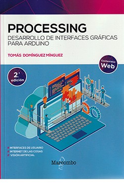 Processing es un lenguaje de programación con un entorno de desarrollo integrado, pensado para todo tipo de usuarios interesados en dotar a sus proyectos con una salida visual de la información. Si quiere descubrir cómo Processing deviene un complemento ideal para Arduino y ESP8266, este es su libro. Con él podrá ir más allá de la recogida de datos de sensores o el manejo de servos y motores, lo que le permitirá crear interfaces y entornos visuales interactivos para llevar sus proyectos con Arduino y ESP8266 a un nuevo nivel. Gracias a la multitud de prácticas que presenta el manual y la explicación paso a paso de los códigos podrá: o Desarrollar proyectos de forma rápida y sencilla, aprendiendo un nuevo lenguaje casi sin darse cuenta, ya que el entorno de desarrollo interactivo (IDE) en Arduino y Processing son muy similares. o Crear interfaces gráficas de usuario para presentar de forma vistosa todo tipo de información y realizar cualquier actividad de control desde un ordenador. o Conectar su ordenador o teléfono móvil a su Arduino de forma remota con Bluetooth o WiFi. o Usar protocolos de internet de las cosas (IoT) para recibir datos y dar órdenes a través de un móvil con acceso a Internet a cualquier dispositivo conectado a Arduino o ESP8266. o Procesar imágenes con métodos de visión artificial que le permitan identificar caras u objetos e, incluso, hacer un seguimiento de sus movimientos. o Desarrollar programas de realidad aumentada que añadan información gráfica o textual en tiempo real a las imágenes obtenidas de una cámara web. Además, en la parte inferior de la primera página del libro encontrará el código de acceso que le permitirá descargar de forma gratuita los contenidos adicionales en www.marcombo.info. Con la amplia variedad de técnicas reunidas en este libro podrá llegar a realizar casi cualquier cosa con Arduino y ESP8266. Disfrute de las enormes posibilidades de una plataforma que no para de crecer y sobrepase los límites de su imaginación. Tomás Domínguez es ingeniero de telecomunicación y doctorado en inteligencia artificial. Su labor profesional se ha desarrollado en una multinacional de telecomunicaciones, donde ha ocupado diversos cargos relacionados con la tecnología. Asimismo, ha ejercido como profesor universitario de ingeniería informática en la Universidad Alfonso X el Sabio de Madrid.