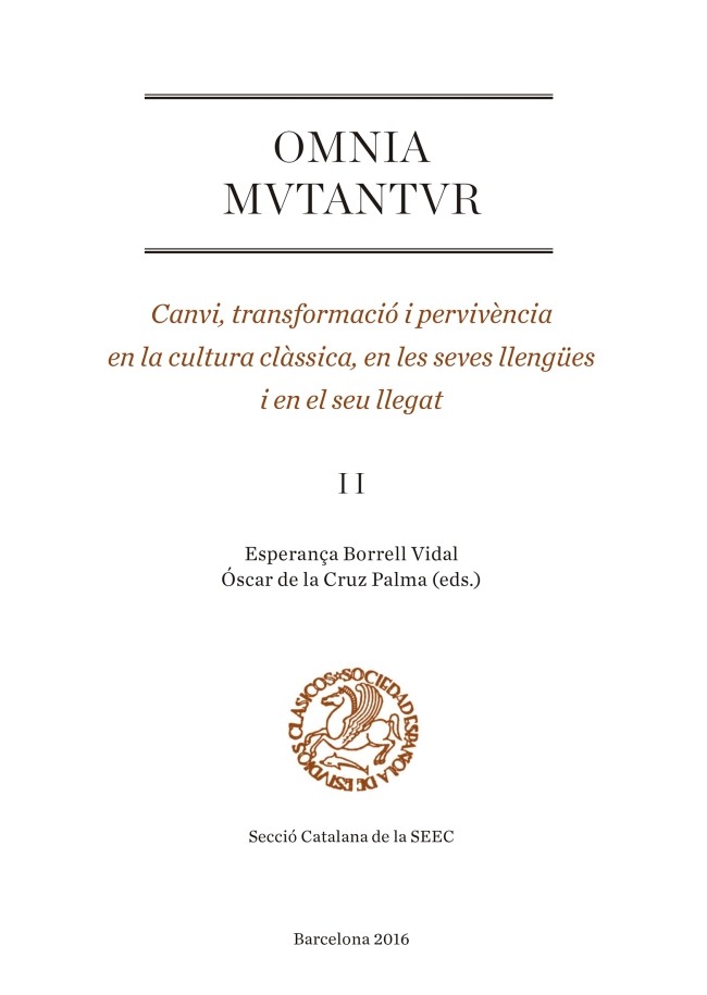 Els dos volums d?Omnia mutantur apleguen algunes de les contribucions que, focalitzades en la cultura, la literatura, la llengua i la civilització de la Grècia i la Roma antigues, així com en la seva pervivència, es presentaren en el decurs d?unes jornades celebrades a la Universitat de Barcelona el juliol de 2013. El fil conductor dels articles que componen els llibres és el concepte de canvi i la capacitat d?adaptació dels antics a noves circumstàncies i nous contextos socials, culturals, intel·lectuals i lingüístics, fet que permet reconèixer també la vigència de l?Antiguitat grega i romana. Aquest segon volum ofereix nombroses actualitzacions de temes relacionats amb el món llatí, sovint revisionistes sobre teories existents, sovint innovadores. Omnia mutantur vol ser un instrument útil per als filòlegs i estudiosos del món antic, i alhora contribuir a la difusió i continuïtat de la tasca que es realitza en aquest camp del coneixement.