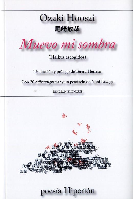 Noni Lazaga se ha planteado un diálogo con sus poemas a través de los ideogramas que componen las imágenes. En cada haiku ha escogido un kanji por su forma y su significado, y a través de él ha creado un poema visual, en conversación con el poema de Hoosai, al que ha denominado calikanjigrama. No se trata de una ilustración del mismo, sino de una respuesta abstracta en la que escritura, espacio y ritmo representan la interpretación libre del poema, y figurativa en cuanto a que se reconocen los kanjis aun cuando estos se contraen, estiran, repiten y superponen en muchos de los calikanjigramas. Artísticamente, el resultado del calikanjigrama es un poema visual, aunque en este libro se trataría de una conversación visual con el poeta a través de sus haikus.
