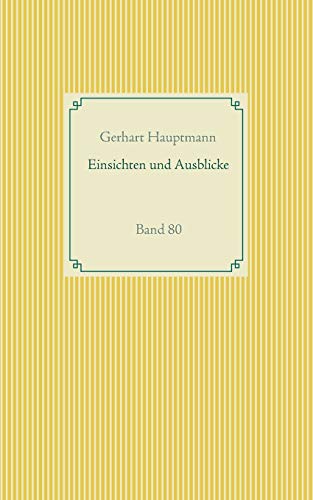 Gerhart Hauptmann Einsichten und Ausblicke - Aphorismen Zuerst erschienen 1942 Nicht als Leitfaden oder etwa, daß man sich darnach richten soll, sammle ich diese Aussprüche, sondern nur, damit der, welcher Lust hat, nehmen und besitzen möge, was sein wie mein ist.