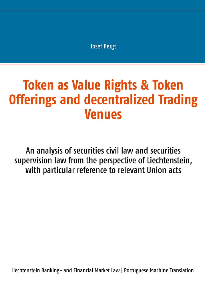 Este livro foi traduzido do alemão para o português por meio de inteligência artificial (tradução automática). This book was translated from German into Portuguese by means of artificial intelligence (machine translation). This academic paper deals with both civil (securities) law and regulatory (securities) law aspects. Thus, a summary of the property law is provided, which deals with the classification of tokens under Liechtenstein law. Furthermore, dematerialized securities, which have been known to the Liechtenstein legal system for almost 100 years, will be dis-cussed. The civil and corporate law focus is on Liechtenstein, while the Swiss corporate law and the general civil law of Austrian law are also taken into account. The supervisory part of the work is clearly in the focus of Union law, but also takes into account national specialties of Liechtenstein, Austria and Germany in addition to European legal acts. Thus, tokens and token-based business models are also examined in the light of European l