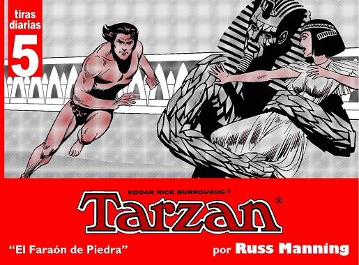 Tiras diarias de Russ Manning del 8 de octubre de 1970 al 26 de junio de 1971. "El trabajo de Manning en sindicación abarca desde 11-XII-1967 a 29 VII-1972 en la tira diaria, y desde 14-I-1968 a 24-6-1979 en las páginas dominicales a color. Las amplias posibilidades de narrativa y diagramación presentes en el comic book no existen en el enclaustrado medio diario. El profesionalismo y la brillantez de un autor maduro se adaptan al limitado espacio consiguiendo una confección y textura extraordinarias. En los cinco años en el que permanece en él, y a un ritmo de trabajo frenético, escribe y dibuja siente historias basadas en la cosmología burroughsiana, dilatando hasta su límite las posibilidades expresivas, a base de panorámicas, viñetas secuencia y profundidad de los encuadres que dotan de escenario convincente el universo fantástico de su autor literario. Cierra cuarenta y tres años de dailies de manera tan brillante como su trascendental inicio, dejando para el olvido treinta y ocho años de historias oscuras. Las historias de Tarzan realizadas por Russ Manning representan la mejor adaptación del mito selvático al cómic."