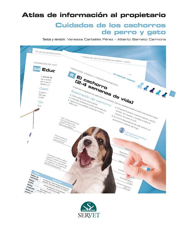 Este atlas tiene el objetivo de ayudar a los veterinarios en las explicaciones e información que quieran transmitirles a los propietarios de cachorros de perros y gatos. Sus principales bazas son el gran atractivo visual de las láminas junto con la claridad y concisión con la que se presentan los contenidos.