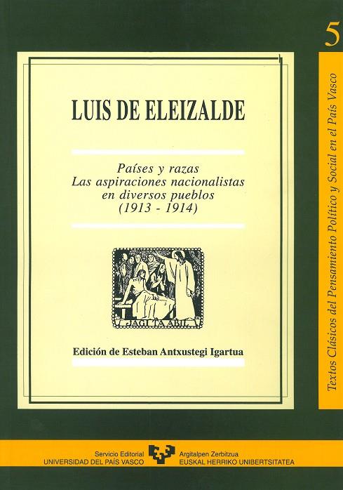 La presente reedición de la obra 'Países y razas. Las aspiraciones nacionalistas en diversos pueblos' (Bilbao, 1914), escrita por este coetáneo y temprano seguidor de Sabino Arana, ofrece un análisis comparado de diversas nacionalidades europeas emergentes (Irlanda, Polonia, Croacia, Serbia...), con finalidad didáctica y con el propósito de extraer enseñanzas para el renacimiento nacional vasco. Luis de Eleizalde, en este sentido, subraya la relación entre la lengua y la conciencia nacional e insiste en la importancia de la educación y de la tarea cultural, al tiempo que expone los retos que ha de afrontar el nacionalismo vasco.