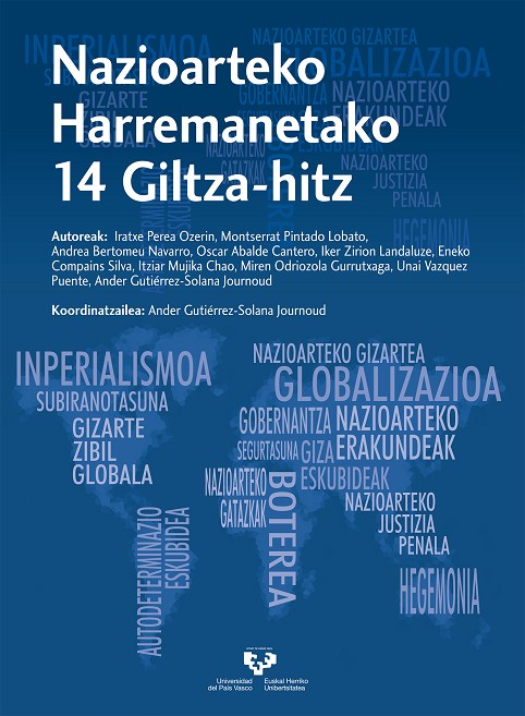 Talde lan honen helburua, "Nazioarteko harremanetako 14 giltza-hitz", Nazioarteko Harremanetako nozio gakoekiko hurbiltze berri bat eskaintzean datza. Diziplina honetako hamalau indar-ideia eta kontzepturen aukeraketaren bitartez, lan honek eztabaidarako gaiekin lehenengo kontaktua suposatuko du. Sarritan, irakasgai honetako zailtasunetariko bat termino zehatzen erabileran datza; diziplina beraren garapena markatu eta azalpen bat merezi duten nozioak. Aukeratutako metodologiak, kasu honetan tematikoa baino, kontzeptuala, ez dauka eskuliburu klasikoa ezta esanahiez osatutako ohiko hiztegi bilakatzeko asmorik. Irakaskuntza anglosaxoiaren metodologietan oinarriturik, ideia gako bakoitza sakonki aztertzen da, diziplinaren autore nagusien aipamenaz eta erabileraz, eta ikasleek uler dezaten idazkera lañoaz.