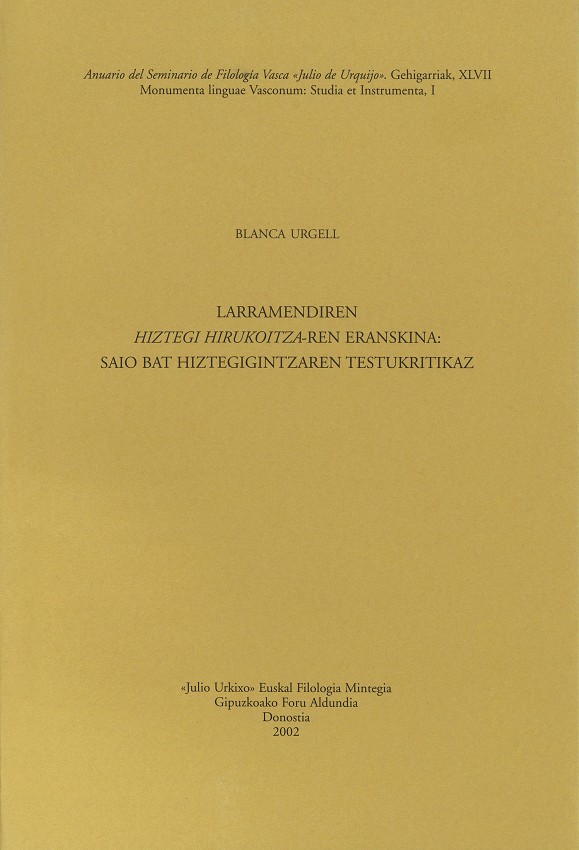 Batek baino gehiago, nik uste, harriduraz hartuko du lan hau: ba ote dago oraino zer esanik Larramendiren “Eranskin” ospetsuari buruz? Ez da hau, bada, Mitxelenak aspaldi egin zuen zerbait? Areago, et al da Mitxelenak egin zituen maisu-lanetako bat? Gai honek azkenotan izan duen bilakaeraz jabe dire...