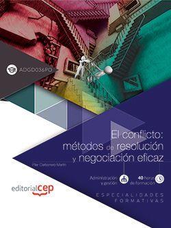 Se entiende por Especialidad formativa la agrupación de contenidos, competencias profesionales y especificaciones técnicas que responde a un conjunto de actividades de trabajo enmarcadas en una fase del proceso de producción y con funciones afines. Las especialidades formativas se encuadran dentro de las familias profesionales establecidas en el Catálogo Nacional de Calificaciones Profesionales, y sirven como referente para la programación de acciones en el marco del subsistema de formación profesional para el empleo. El presente volumen incluye el desarrollo de contenido basado en el programa de la especialidad ADGD036PO, ?El conflicto: métodos de resolución y negociación eficaz?, el cual puede ser de aplicación en la programación de acciones formativas relacionadas. Su estructura es la siguiente: - Ficha técnica - Objetivos generales y específicos - Desarrollo teórico de programa - Resumen por tema - Glosario de términos - Bibliografía - Ejercicios de autoevaluación por tema: test y actividades