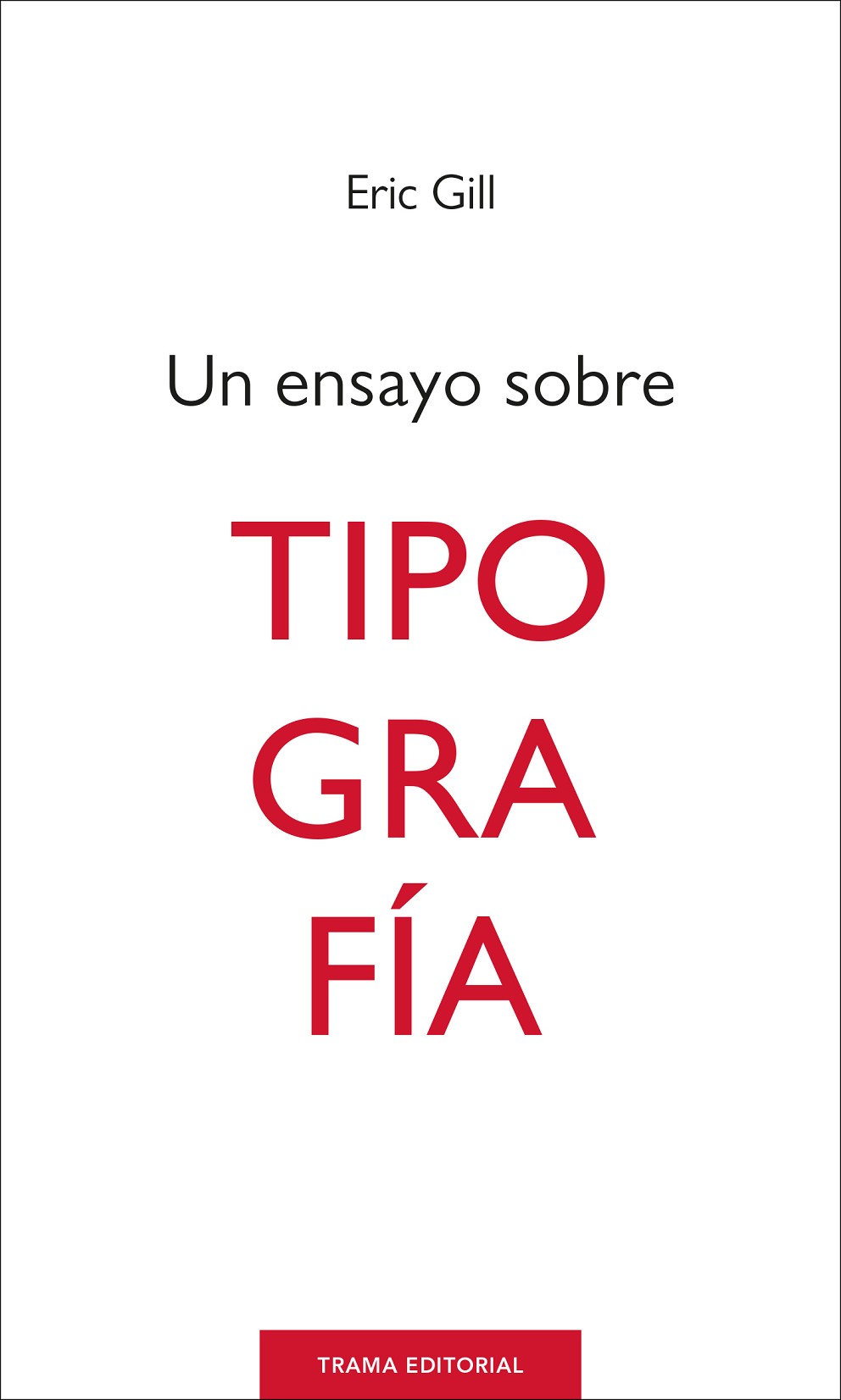 Este no es un libro sobre tipografía y diseño. A Eric Gill no le interesa el aspecto estético de la tipografía, sino las letras en sí y su efecto en nuestras vidas. Porque las letras están hechas para ser leídas. Por tanto, digámoslo alto y claro: si Un ensayo sobre tipografía fuera apenas un mero manual sobre cursivas, serifas e interlineados, hoy, en estos tiempos en que lo digital se impone, su relevancia sería la de un reloj de sol. Pero conserva toda la vigencia del mundo, porque supone una atinada descripción de los peligros del trabajo deshumanizado y una defensa a ultranza del individuo creador, siempre enfrentado a los dos ritmos –el de la máquina y el del ser humano– que chocan una y otra vez en su día a día. Tan polémico como imprescindible, este ensayo de Gill sigue actuando como una metáfora inmejorable, porque su autor sabe que la tipografía encierra una historia paralela a aquella que ayuda a fijar sobre un soporte, y nos la brinda con una claridad arrolladora.