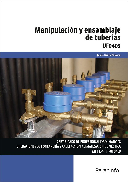Este libro titulado "Manipulación y ensamblaje de tuberías" se corresponde con la UF0409 (90 horas) incluida en el MF1154_1 "Instalación de tuberías", perteneciente al Certificado de profesionalidad Operaciones de fontanería y calefacción-climatización doméstica, y su contenido ha sido adaptado al real decreto 1375/2009, de 28 de agosto, que regula los Certificados de profesionalidad para la familia profesional de instalación y Mantenimiento.;El oficio de fontanero tradicionalmente fue un oficio artesano trasmitido de maestro a aprendiz sin más rigor científico que el conocimiento del oficio, pero a medida que la nueva edificación se fue haciendo más compleja se impuso la necesidad de dotar a estos profesionales de conocimientos reglados a fin de dar respuesta a las nuevas exigencias técnicas, reguladas por el Código Técnico de la Edificación vigente desde 2006, que a través de sus Exigencias Básicas Hs4 de suministros de agua y Hs5 sobre evacuación de aguas fijan las Normas para la realización de instalaciones de abastecimiento y evacuación en los edificios de viviendas.;Los nuevos certificados de profesionalidad, conforman el perfil del nuevo profesional que las empresas demandan y por ende se hacen necesarios textos adaptados a estos nuevos perfiles, con materiales didácticos que desarrollen esta materia incluyendo información detallada y precisa sobre la esencia teórica en que se fundamentan los conocimientos así como la incorporación de técnicas, desarrollos prácticos y conocimiento de materiales de última hora para la ejecución de dichas instalaciones.;Jesús Nieto Palomo tiene experiencia como instalador, profesión que ejerció durante años en el montaje de calefacción e instalaciones de agua doméstica, posteriormente fue docente, impartiendo clases de Instalaciones de Fontanería en el Centro de Formación CEFOIM durante los años 2003-2009, en los que fue profesor de los primeros cursos on-line de este Centro y realizó labores de asesoramiento con la Jefatura de Estudios en la modernización de métodos y programas para la obtención de los carnets de instaladores del Mº de Industria, realizando a su vez los libros de texto de dicha especialidad. Fue también profesor de cursos de Fontanería en ASEFOSAM y autor del libro "Instalaciones de Fontanería. Teoría y Orientaciones Prácticas", editado por Paraninfo en el año 2010.
