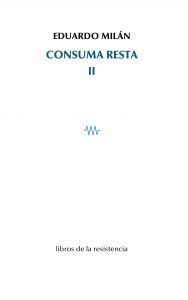 Consuma resta II continúa la serie de volúmenes que reúne la poesía de Eduardo Milán. Recoge libros del periodo 2004-2007 y en su segunda sección, «Contra el aura del tiempo», inéditos del periodo 2016-2019. Algunos de los libros ya publicados han sido modificados por el autor respecto a ediciones anteriores.