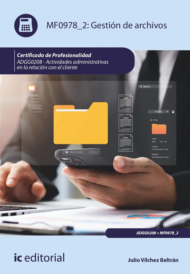 - Identificar los componentes del equipamiento del sistema de archivos -equipos informáticos, sistemas operativos, redes, elementos y contenedores de archivo. - Utilizar las prestaciones de los sistemas operativos y de archivo de uso habitual en el ámbito organizacional, creando y manteniendo una estructura organizada y útil a los objetivos de archivo planteados consiguiéndose su optimización. - Aplicar las técnicas de registro y archivo de la información, pública y/o privada, que faciliten el acceso, la seguridad y la confidencialidad de la documentación en soporte papel.