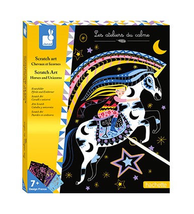 8 tarjetas para rascar, 1 herramienta de madera y 1 manual con modelos y instrucciones.