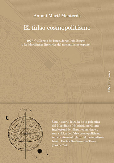 Estudio de historia comparada de intelectuales, investigación literaria de primer orden o novela familiar con Borges, este ensayo parte de la revisión implacable de la figura de Guillermo de Torre para iluminar las contradicciones, paradojas y tensiones que, desde 1927, aún genera un enunciado tan polémico como «Madrid, meridiano intelectual de Hispanoamérica». El concepto falso cosmopolitismo vertebra estas páginas y sintetiza la incapacidad del nacionalismo español para entender la complejidad americana, verdadero trasfondo de toda la polémica y todavía hoy motivo de discordia intelectual. «Y los impostores intelectuales que sustentan esta fantasía saben que serán remunerados generosamente por el Estado. Les esperan premios Cervantes, Princesa de Asturias y sillones en la Real Academia Española de la Lengua; y esto es así desde hace casi un siglo. La unidad de España, como valor absoluto, es una inversión a corto, medio y largo plazo. En definitiva, se trata de la actitud de los intelectuales ante el naufragio del liberalismo español. O lo que es lo mismo: su falso cosmopolitismo.» Antoni Martí Monterde (Torís, Valencia, 1968) es profesor de Teoría de la Literatura y Literatura Comparada en la Universitat de Barcelona. Sus últimos libros son Stefan Zweig i els suïcidis d’Europa (2020, Premi Serra d’Or), Nosaltres els europeus (2022) y Joseph Texte. Una història trista de la literatura comparada (2023). En H&O Editores ha publicado Poética del Café. Un espacio de la modernidad literaria europea (2018)