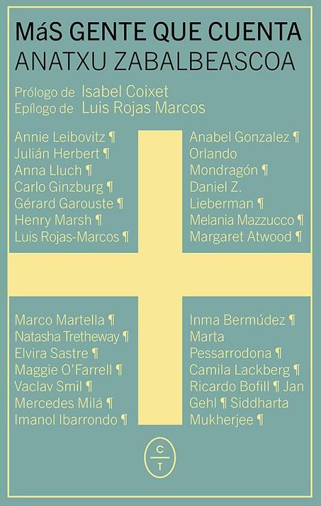 Más gente que cuenta es el retrato en palabras de personajes de nuestro tiempo que, a través de sus obras, sus éxitos y sus fracasos, retratan también el presente, este mundo confuso y extraordinario que habitamos. Veinticinco personajes que no pueden ser encasillados en una sola definición, porque son complejos -una condición esencial de la inteligencia- y como tales, su interés y su curiosidad a menudo desbordan el título por el que son reconocidos. Ese es el trabajo de Anatxu Zabalbeascoa: desvelar lo que no se ve, acercándose a dudar con ellos, asomándose a sus contradicciones, iluminando al ser humano que a menudo se protege detrás del personaje. Porque para atrevernos a vivir, debemos atrevernos a expresar nuestros sentimientos más hondos. Debemos conversar.