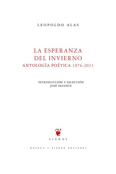 La esperanza del invierno. Antalogía poética (1976 - 2011) Leopoldo Alas escribió sobre su propia obra: La poesía es el modo más genuino de mi escritura: su fundamento. Todo lo demás que he escrito, ya fuera narrativa, ensayo o periodismo, ha estado más o menos marcado por el fulgor poético que necesita el lenguaje para ser auténticamente expresivo y comunicativo. Sin poesía, la palabra se extingue. Sin poesía no hay sonido, ni eco, ni sentido. Parecen, y lo son, las palabras del testamento de un poeta que hizo de su vida su propia escritura.