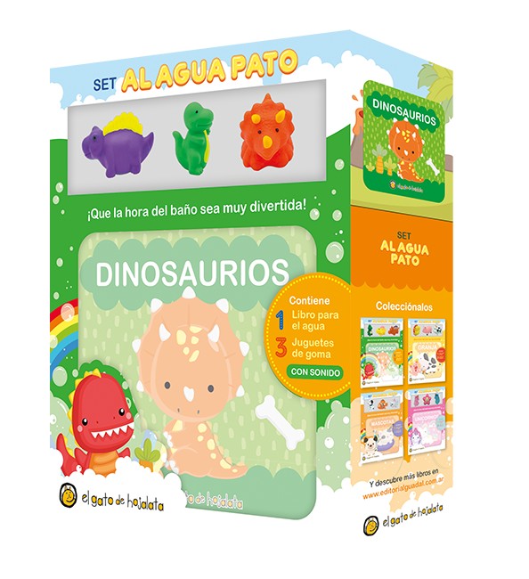 Un libro con ilustraciones coloridas y en imprenta mayúscula. Además, tres juguetes de goma para entretener a los más pequeños y que el baño sea placentero. El set ideal para ir ¡al agua pato!
