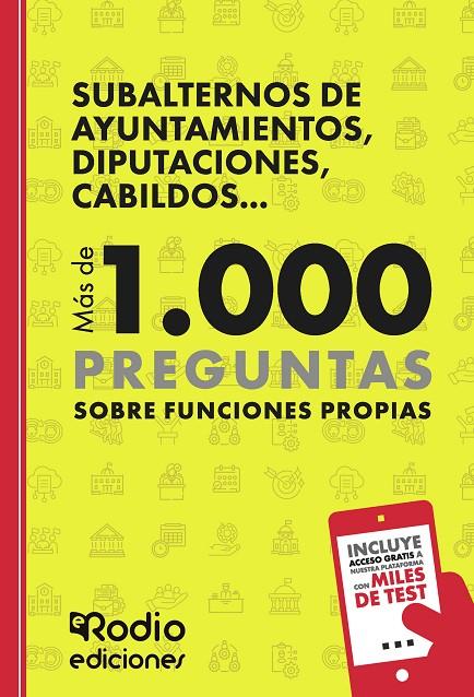 El equipoeditorial de Ediciones Rodio, pone a tu disposición un eficaz y completo manualpara la preparación de las pruebas a Subalternosde Ayuntamientos, Diputaciones, Cabildos... Más de 1.000 preguntas sobreFunciones Propias, categoría que continuamente están convocando estas Administraciones.Te of...