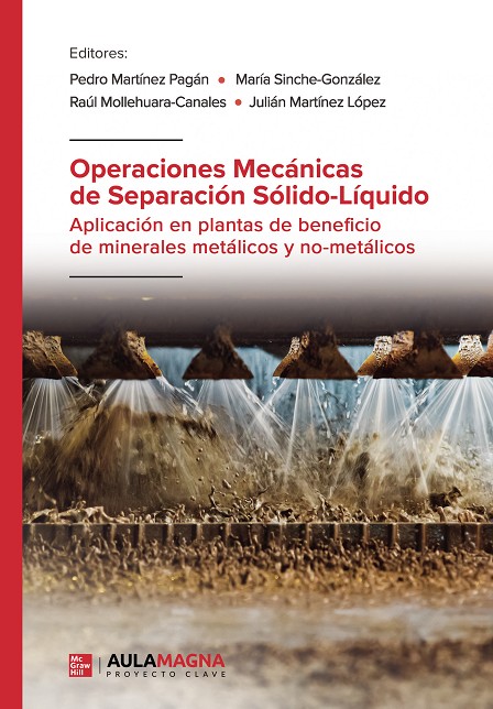 Los procesos de separación sólido líquido son una parte crucial en los procesos de tratamiento de minerales. La recuperación, reducción y reutilización de agua de proceso es una práctica generalizada en la industria minera. Por ello, la actual tecnología de separación sólido líquido se ha convertido en la solución tecnológica para la gestión de los relaves mineros. Teniendo en cuenta lo anterior, este manual hace una revisión de los equipos actuales más comúnmente utilizados en la industria de procesos de minerales. Para ello, se introduce la separación de sólido líquido, describiendo su importancia y objetivos, para a continuación, abordar los procesos de separación (espesamiento, centrifugación y filtración), así como los principales equipos que los representan. Para estos equipos se describe su funcionamiento, principales características de operación, variables de selección y dimensionado, etc. En definitiva, este manual se aborda con un enfoque eminentemente práctico dirigido a todos aquellos profesionale