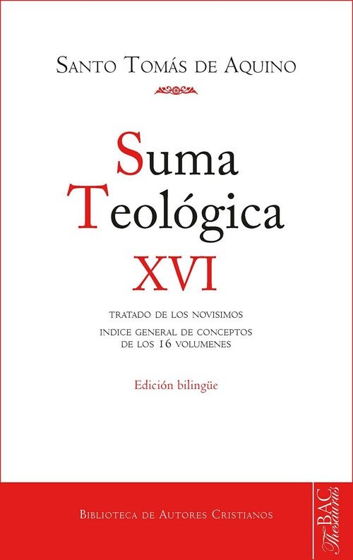 Edición bilingüe. Texto latino de la edición crítica leonina. Reimpresión de la edición de 1960. Traducción y notas por una comisión de PP. Dominicos presidida por Francisco Barbado Viejo, OP. Este decimosexto volumen comprende: - Tratado de los novísimos - Índice general de los 16 volúmenes