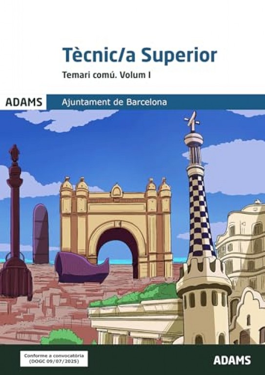Surt al carrer la nova edició del Volum I del Temari comú que ADAMS ha elaborat per a la preparació de les proves d'accés a llocs de Tècnic/a Superior, pertanyents al subgrup A1, de l'Ajuntament de Barcelona. Aquest llibre desenvolupa els temes 1 a 9 del programa oficial, publicat al Diari Oficial de la Generalitat de Catalunya en data 9 de juliol de 2025 (DOGC núm. 9450). En definitiva, creiem que aquest volum resulta l'eina més eficaç per a l'opositor interessat en accedir a la funció pública de l'Ajuntament de Barcelona, juntament amb el Volum II del Temari comú, així com la versió online d'ADAMS Test.