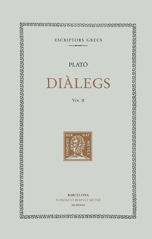 El segon volum dels Diàlegs de Plató inclou: Càrmides, Lisis i Protàgoras.