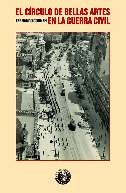 En las primeras semanas de julio de 1936 terminaban en el Círculo de Bellas Artes las clases de pintura y escultura, así como el ciclo de conciertos. El estallido del golpe de Estado del 18 de julio provocó el cese de las demás actividades que aún tenían lugar en el Círculo. A los pocos días, un grupo de milicianos se presentó en sus salones e informó a los pocos trabajadores que permanecían en su puesto de la incautación del edificio por parte del Frente Popular. Así fue como los socios perdieron el control de la institución hasta el término de la Guerra Civil. Pero, ¿qué pasó en el Círculo de Bellas Artes durante esos años? Al hilo del relato del desarrollo de la contienda en Madrid, Fernando Cohnen reconstruye esos años fatídicos y nos revela el notable papel que desempeñó el emblemático edificio de Antonio Palacios durante el asedio de la ciudad. Además de ser la sede alternativa de la Casa del Pueblo, sus elegantes salas funcionaron como cuartel general de diversas organizaciones e instituciones –como el Comité Popular de Abastecimientos o la Casa de Valencia, cuyos responsables contribuyeron a la evacuación de niños y mujeres de Madrid y a la coordinación de milicianos levantinos que acudieron a defender Madrid, o el Altavoz del Frente, órgano de propaganda del Partico Comunista– y su teatro vibró con las multitudinarias asambleas y conferencias que pronunciaron las personalidades más renombradas de la ciudad en guerra.