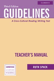 Guidelines, Third edition, is an advanced reading and writing text designed specifically to strengthen students' academic writing. The Teacher's Manual to Guidelines first introduces the content and structure of the student's book and offers general advice on the teaching of writing. The Manual then details approaches to each reading, each set of guidelines, and each task. Sample lesson plans and answers to exercises are included.