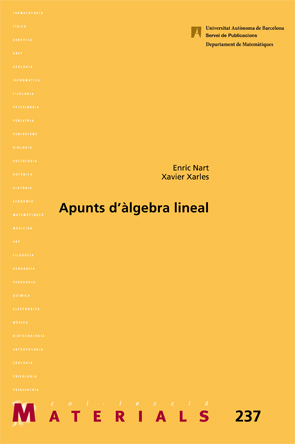 En aquesta obra es fa una presentació clara i directa de les tècniques més bàsiques d'àlgebra lineal. Amb un llenguatge especialment adreçat als estudiants, s'introdueixen els conceptes d'una manera planera, posant l'èmfasi en els aspectes més funcionals i instrumentals de les tècniques lineals. En una primera part es practiquen diferents tècniques de manipulació de matrius, que constitueixen el fonament bàsic del curs. En una segona part, més abstracta, s'estudien els espais vectorials i les aplicacions lineals, que són els conceptes que millor modelitzen els fenòmens lineals. El text acaba utilitzant aquesta maquinària abstracta per obtenir tècniques de diagonalització de matrius, d'ús freqüent en molts processos científics i tecnològics. Les notes incorporen una extensa col·lecció de problemes proposats i la resolució completament desenvolupada de diversos exercicis