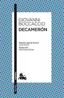 Escrita entre 1349 y 1351, es una colección de cien cuentos de variada procedencia donde el autor muestra su inigualable destreza de narrador, perspicacia psicológica, certera pincelada satírica y magnífica descripción de las costumbres de aquel tiempo. Los cuentos son relatados por un grupo de diez jóvenes que se retiran a las afueras de Florencia para protegerse del contagio de la peste que asolaba la ciudad; allí, durante diez días, cada uno de ellos tiene que gestionar una jornada y todas sus actividades; entre éstas destacas especialmente las reuniones donde, para pasar el tiempo, los presentes tienen que contar un cuento. Los temas son muy variados, abundan los licenciosos, pero también se narran historias sentimentales, trágicas y moralizantes. En esta edición Anna Girardi, especialista en la obra de Boccaccio, propone una selección de los mejores relatos de Decamerón según la espléndida traducción de Pilar Gómez Bedate.