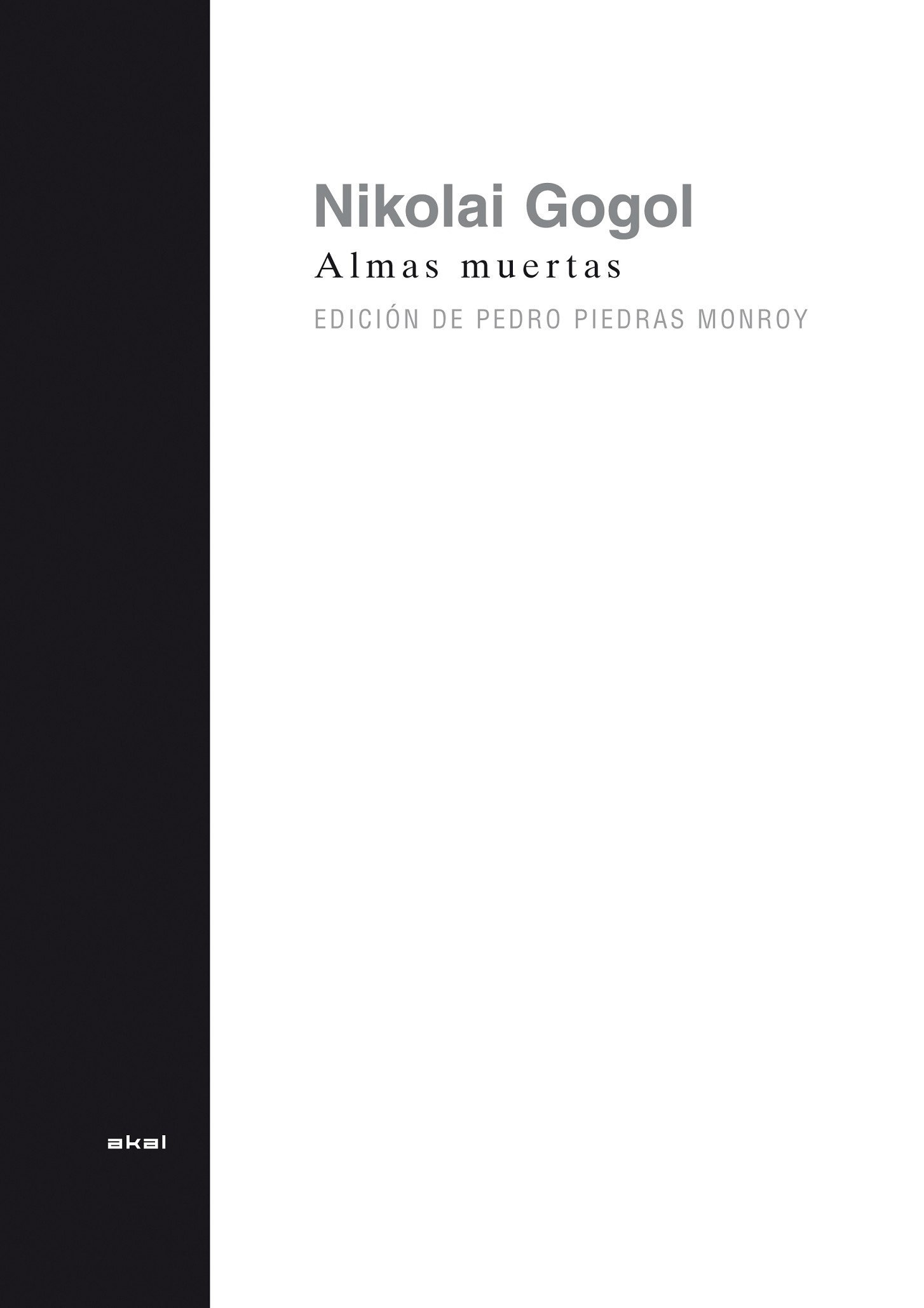 Almas muertas de Nikolai Gogol goza del nada despreciable honor de ser la primera gran novela de la literatura rusa del siglo XIX, además de uno de los fragmentos más hermosos, más arriesgados y más divertidos de la narrativa universal. Por supuesto, sólo alguien tan indescifrable y escurridizo como el consejero colegiado Pavel Ivanovich Chichikov podía ser el héroe de una obra en la que el lector va a percibir, desde la primera página, en todo su vigor, la frescura y la actualidad del universo gogoliano. La presente edición de Almas muertas es la única en castellano que incluye las sucesivas versiones que el propio Gogol hiciera de la segunda parte de su obra. Acompañada de un exhaustivo aparato crítico, pretende, de esta manera, ser una contribución fundamental al conocimiento de un texto formalmente complejo que durante generaciones ha martirizado a editores de todo el mundo, a la vez que recuperar, con el público de hoy, la cercanía y la complicidad únicas que este escritor ruso universal estableció con el público de su tiempo.