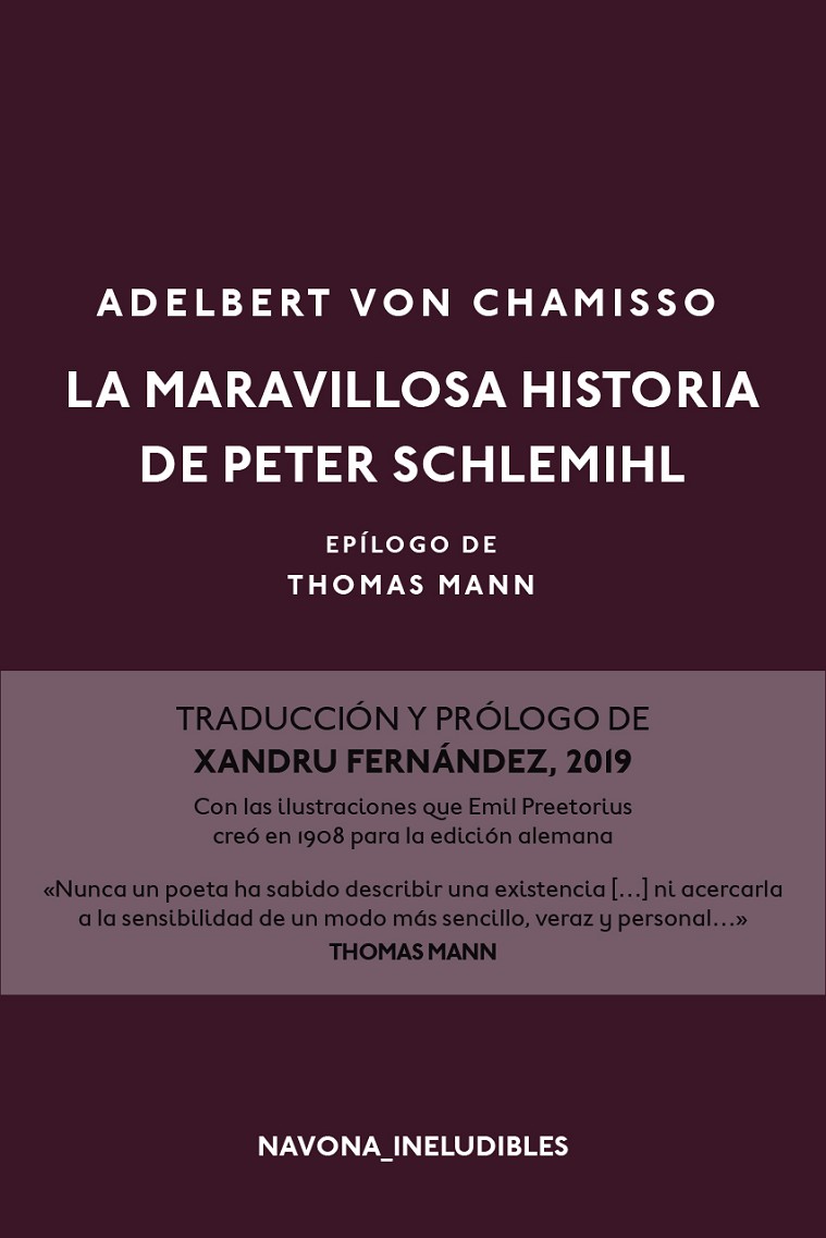 El joven Schlemihl vende su sombra al diablo a cambio de una bolsa llena de oro que nunca se agota. El anhelo de riqueza le conducirá al lujo, pero con él llegarán también el hastío y el ansia de normalidad. “Alguien a quien no señalen con el dedo por carecer de sombra.” La maravillosa historia de Peter Schlemihl es, así, un cuento simbólico que gozó de un éxito enorme desde su publicación en 1814, apenas cinco años después del famoso Fausto de Goethe, con el que guarda a la vez similitud y distancia.