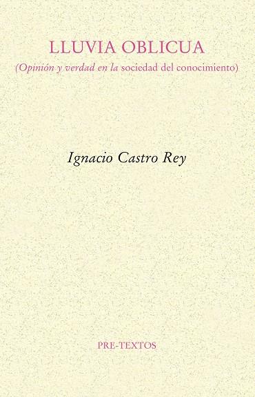 Manejando una hipótesis antigua e insensata, que jamás ha sido posible descartar, este libro trata de lo que no sabemos del hombre. Menos todavía, de la mujer. Lluvia oblicua se intenta acercar a lo que, en público y en privado, hoy no aceptaríamos de buen grado en la existencia. Que esta tentativa sea un escándalo, o más bien pase desapercibida y resulte inocua, es algo que no depende de la voluntad del autor ni del hilo argumental de este texto, que tiene la más dañina intención que se pueda imaginar. Naturalmente, la conclusión debe dejarse al criterio de lectores muy distintos. Pero es posible que, finalmente, el alcance de lo que aquí se escribe dependa de una nueva y desconocida edad, que a veces parece anunciarse en algunos signos caídos de este engañoso presente.