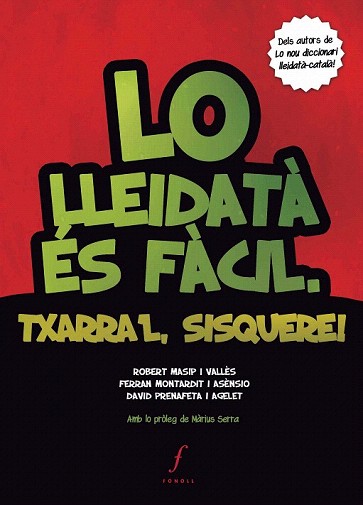 Després de batre rècords de vendes amb Lo nou diccionari lleidatà-català, Robert Masip, Ferran Montardit i David Prenafeta continuen a la seua, que no és altra que recuperar i divulgar l'ús de la parla pròpia de Lleida. Lo lleidatà és fàcil. Txarra?l, sisquere! és el recull més extens del vocabulari...